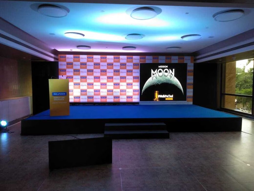 Professional stage designs, backdrops, and branding solutions for conferences, product launches, and business events.